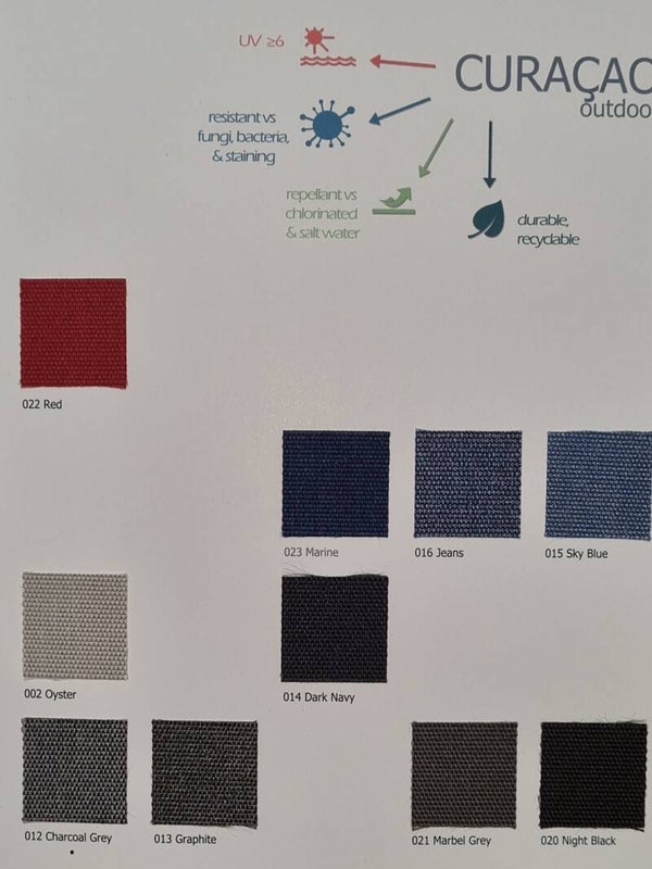 Curacao Outdoor-Stoffe für Ihre Lounge-Kissen. Preis ist Laufmeter. Der Stoff ist ca. 150cm breit.
